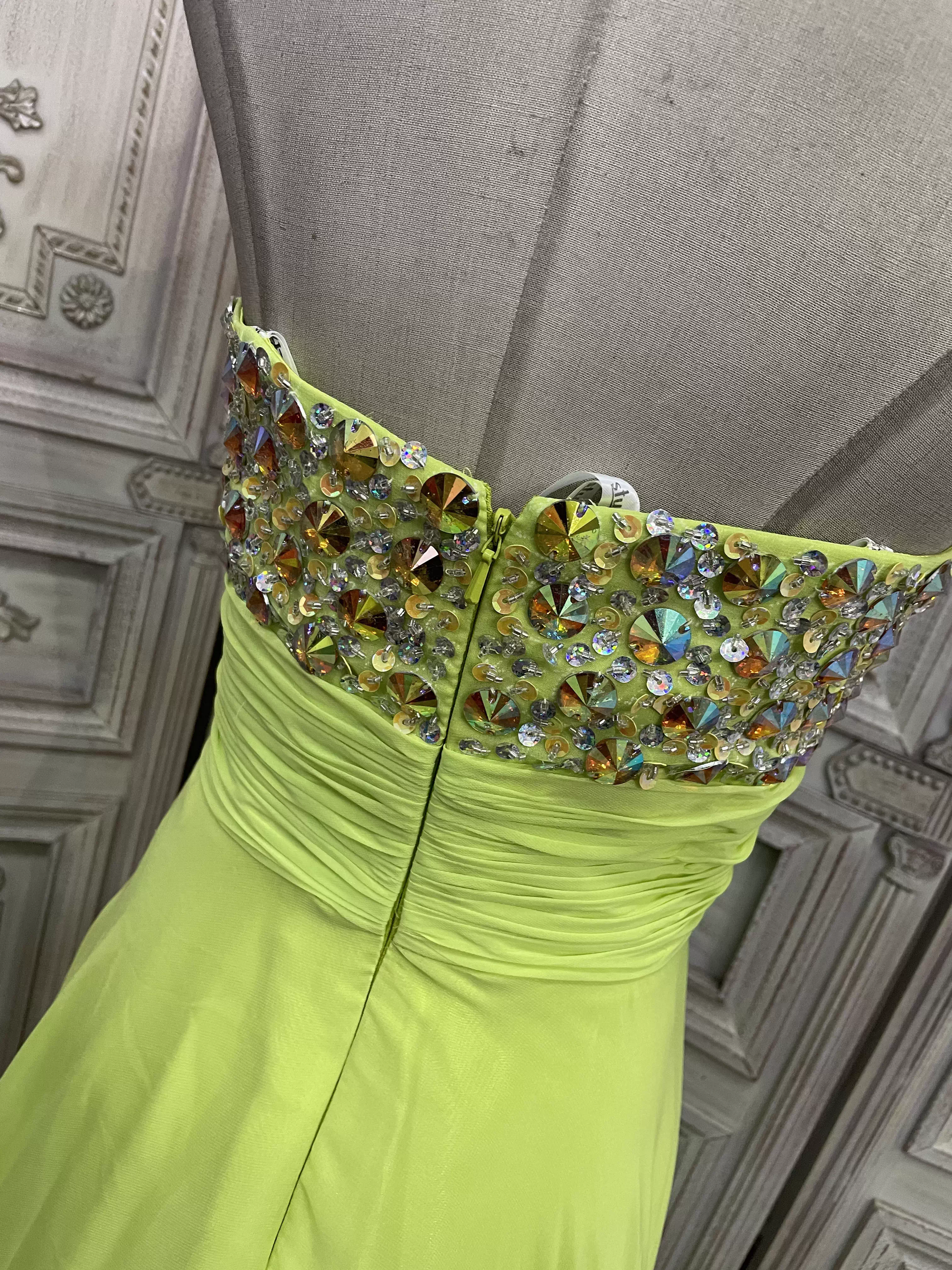 Elegantes, limettengrünes, trägerloses Abendkleid mit Herzausschnitt, Pailletten und Chiffon, Ballkleid DP7620