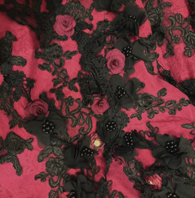 Vintage-inspiriertes, trägerloses Meerjungfrauen-Abendkleid aus burgunderroter und schwarzer Spitze mit dramatischer Schleppe DP7257