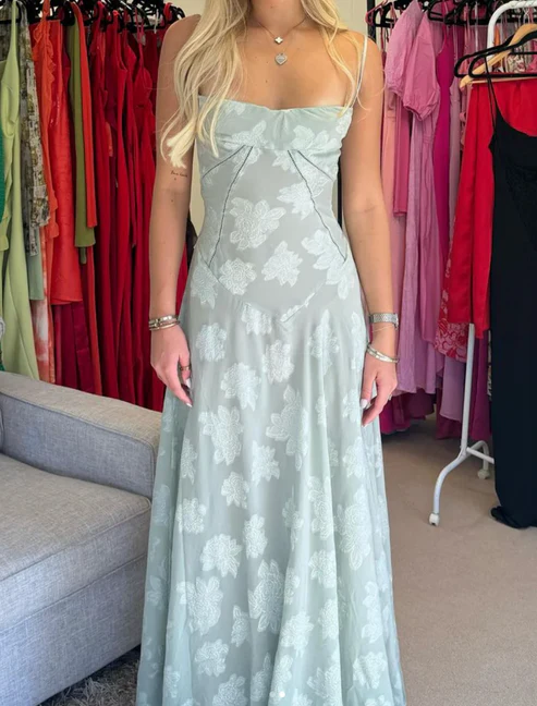 Dusty Blue Spaghetti Straps A-Line Long Party Dress Wedding Guest Dress, DP3684