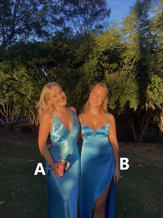 Elegant Blue V Neck Spaghetti Straps Long Wedding Guest Dress, DP3556