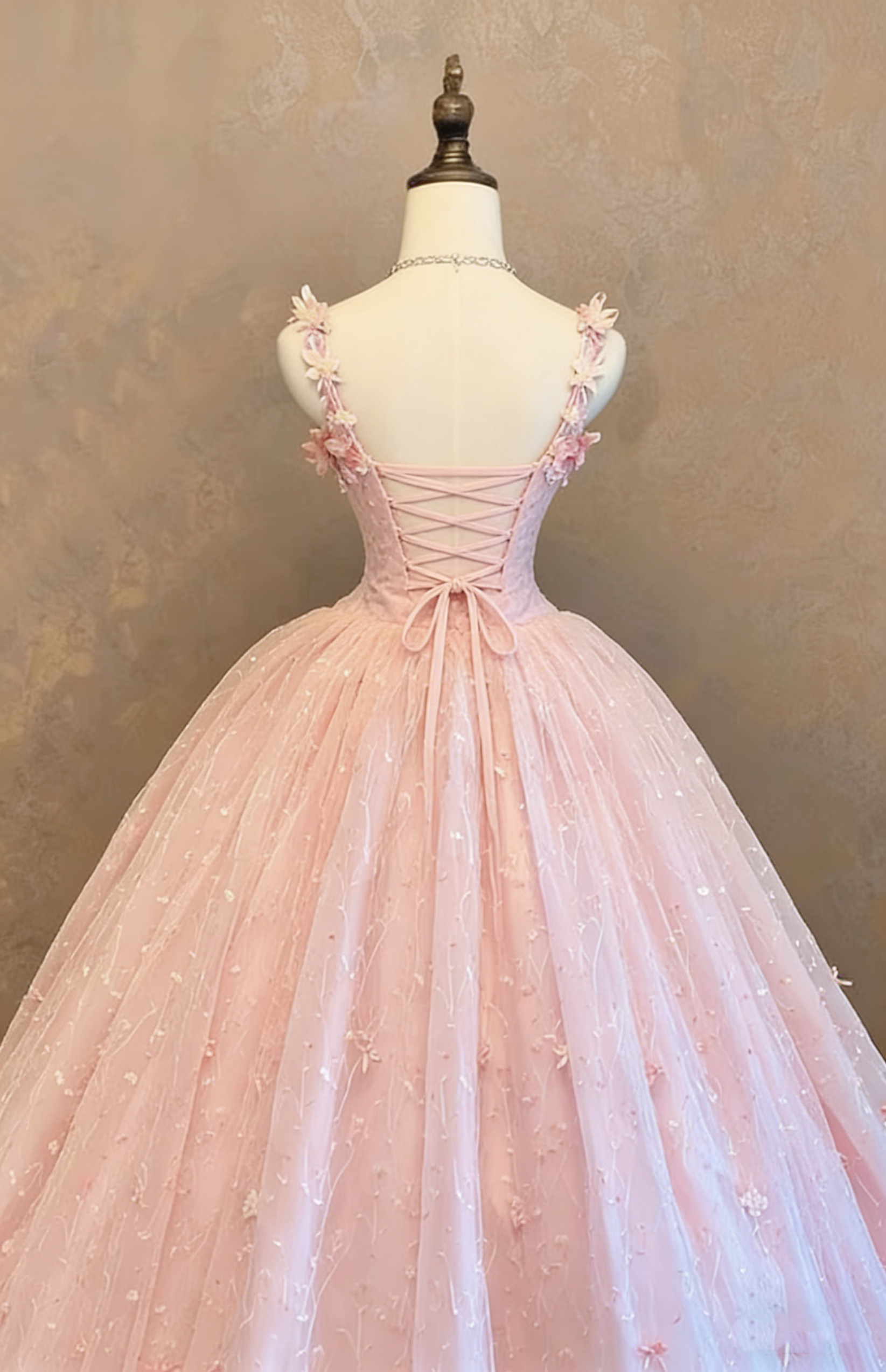 Elegant Pink Floral Applique Tulle Sweet 15 Quinceanera Ball Gown DP8056