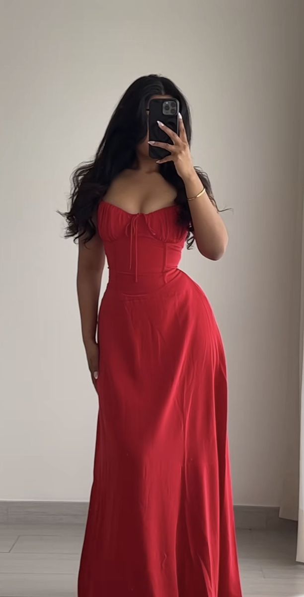Red A-Line Straps Long Party Dress Wedding Guest Dress, DP4251
