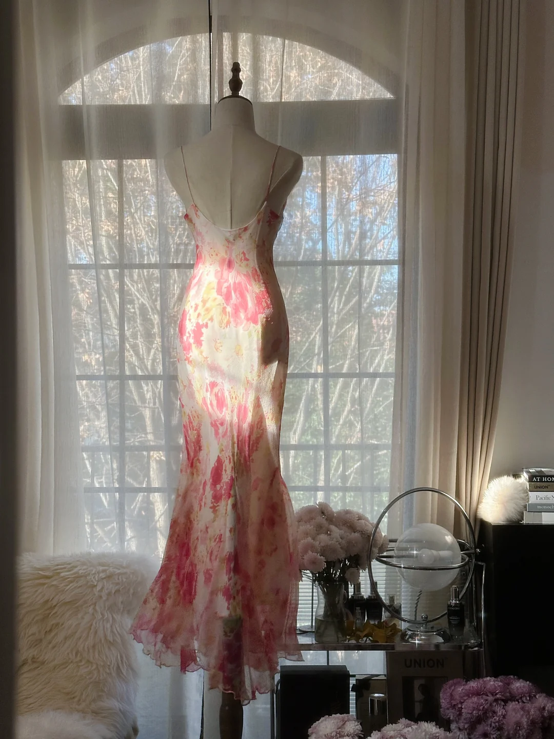 Sexy Pink Straps Mermaid Chiffon Long Party Dress Wedding Guest Dress, DP5281
