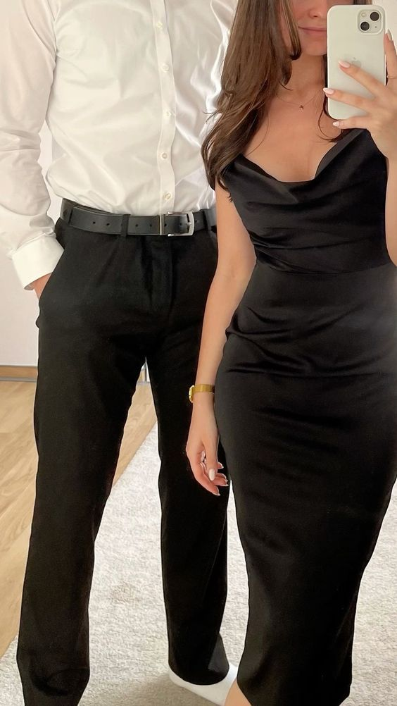 Simple Black Satin Long Pary Dress Wedding Guest Dress, DP3578
