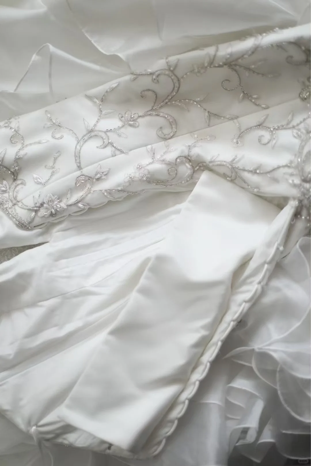 Vintage White Lace Strapless Ruffled Mermaid Embellished Bodice & Train Wedding Dress DP7653