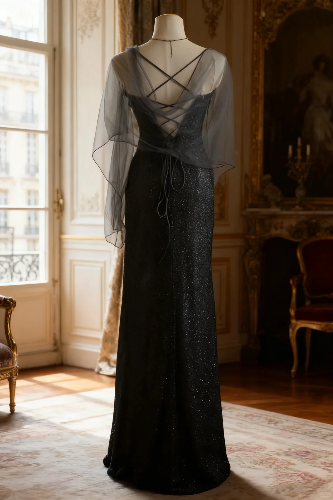 Glamorous Black Sequin Spaghetti Strap Bodice High Slit Prom Dress DP7645