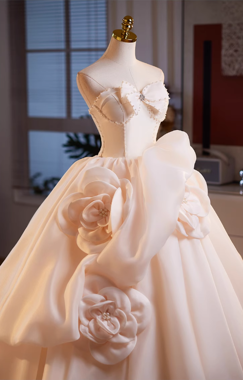 Gorgeous Champagne Strapless Bow 3D Floral Sweet 16 Quinceanera Ball Gown DP7488