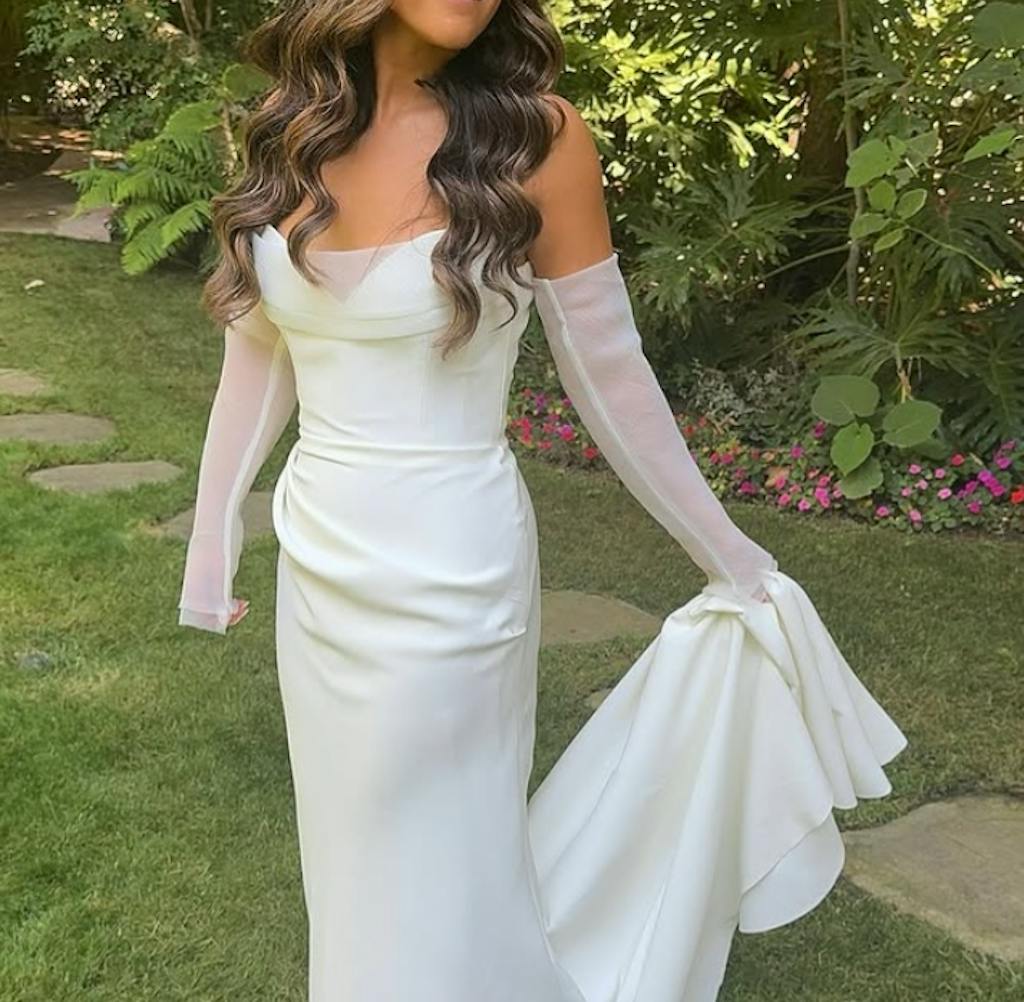Vintage White V-Neck Strapless Mermaid Satin Long Prom Dress Wedding Dress DP2918