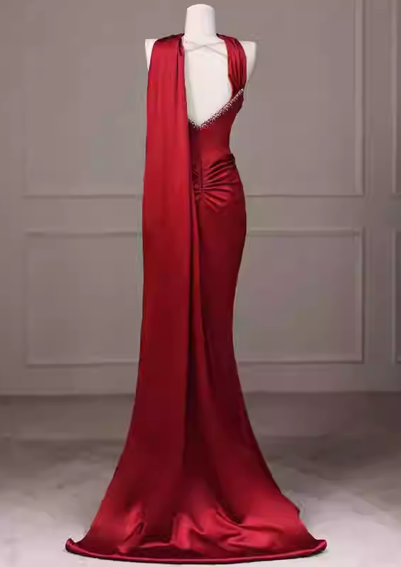 Robe de bal élégante en satin rouge, robe de soirée sirène bustier DP7892