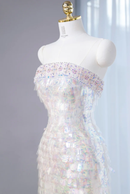 Robe de soirée fourreau bustier à sequins irisés somptueux DP7444