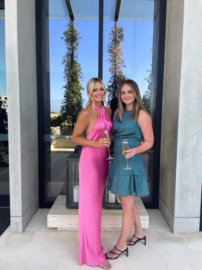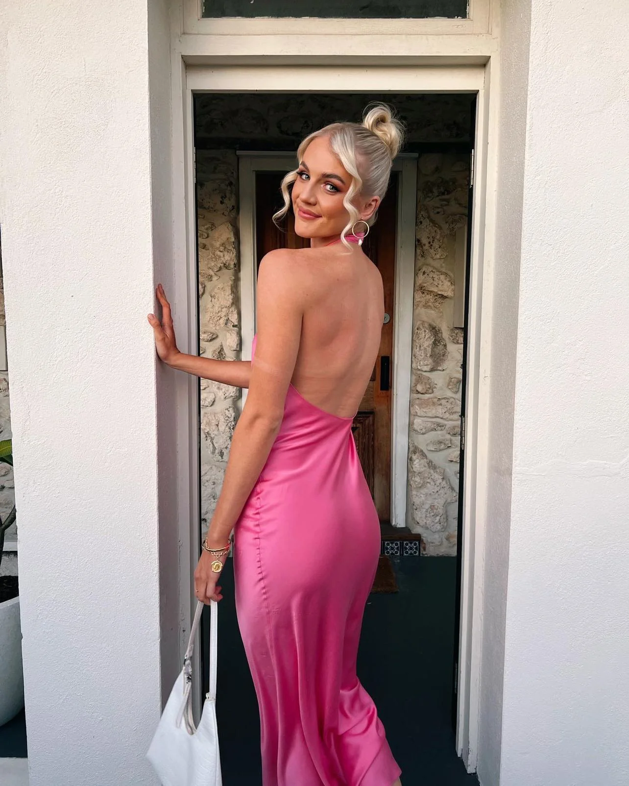Robe de bal longue rose vif dos nu, robe d'invitée de mariage, DP1671