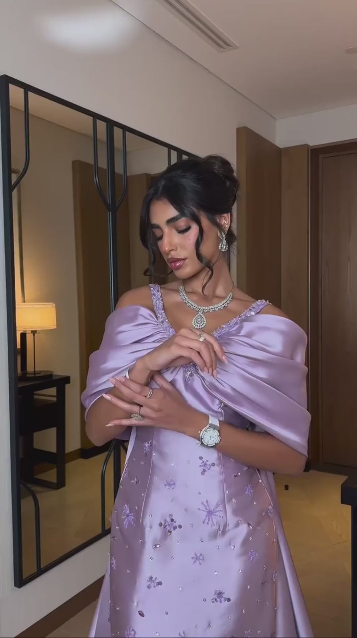 Robe de bal vintage en satin lilas, fourreau, cape perlée, robe de soirée longue, robe formelle DP6713
