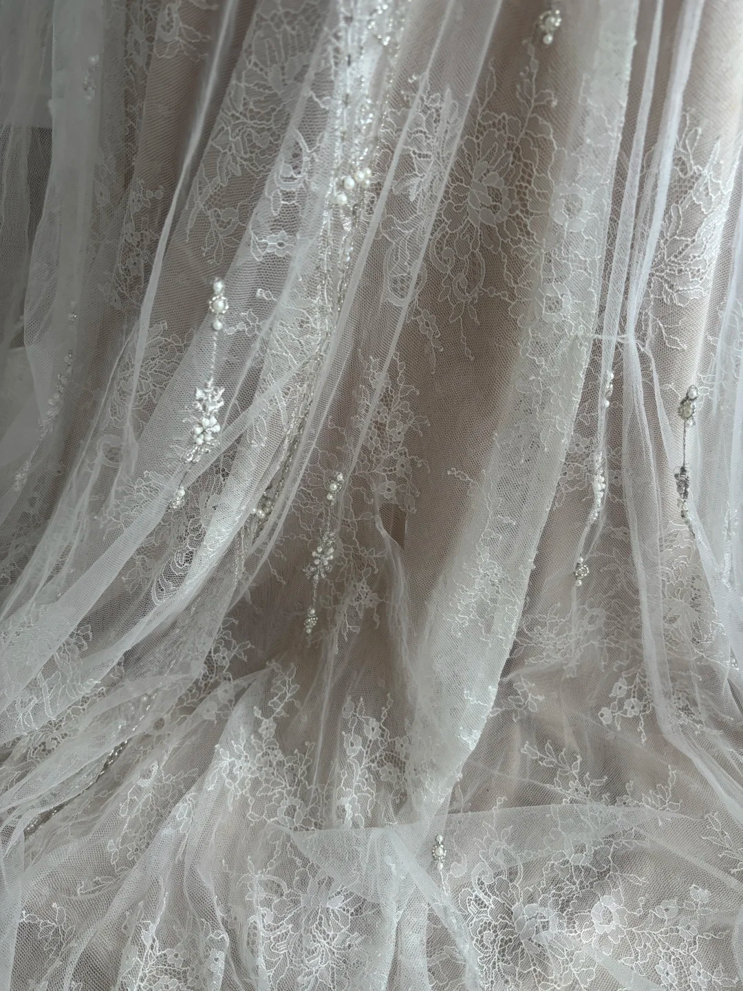 Glamorous Champagne Lace Mermaid Wedding Dress Spaghetti Strap Beaded Evening Gown DP8132