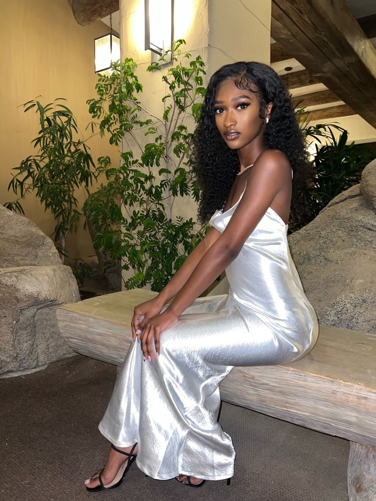 White Simple Black Girl Long Party Dress Wedding Guest Dress,DP1208
