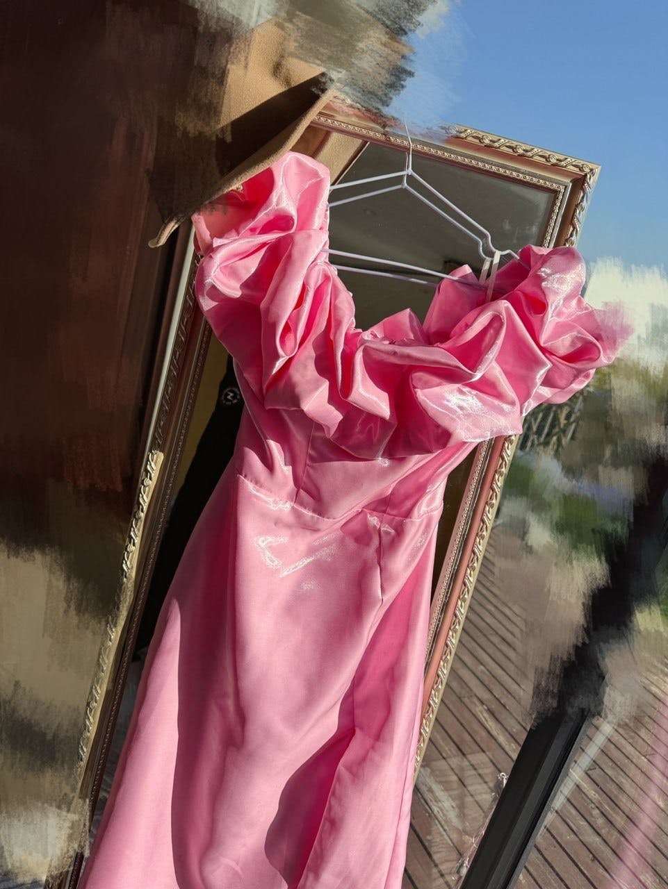 Chic Pink Off Shoulder Long Prom Dress with Slit,DP1067