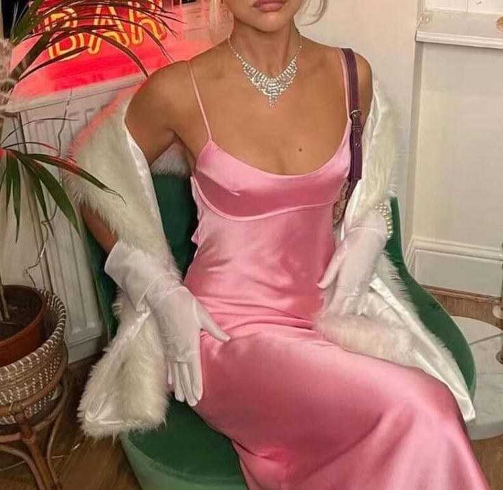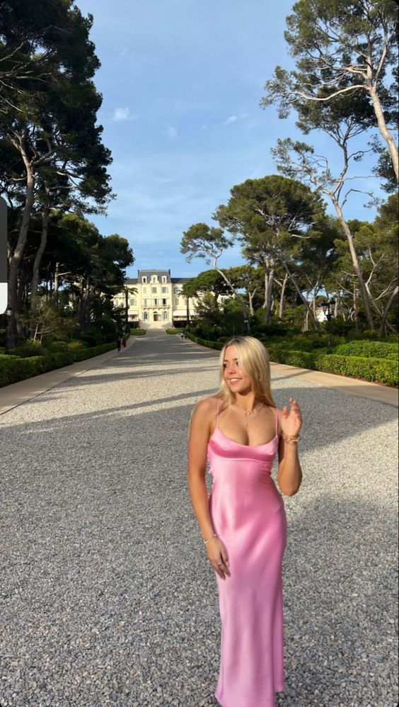 Pink Spaghetti Straps Satin Long Party Dress Wedding Guest Dress, DP3385