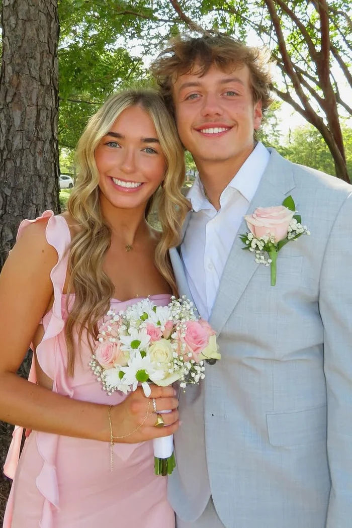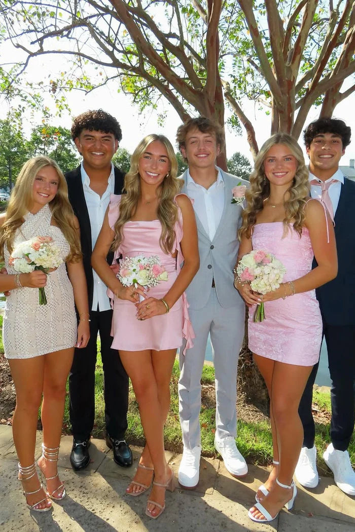 Vintage Pink Chiffon Ruffled Backless Homecoming Dress Party Dress Cocktail Dress DP6683